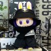 Labubu omarmt vol vertrouwen een bohemien en elegante streetwearstijl. Uitgevoerd met zwarte brede broeken en een verfijnde gestreepte trui, wordt deze look compleet gemaakt met een zwarte bucket-hoed versierd met een iconisch gouden Louis Vuitton-detail, wat een moderne urban fashion uitstraling geeft. Een stijlvolle zwarte sjaal maakt de gedurfde en onderscheidende look af, perfect voor liefhebbers van trendy, karaktervolle en moderne designs. Een onmisbaar stuk voor verzamelaars die originaliteit en persoonlijkheid zoeken in hun figuren.